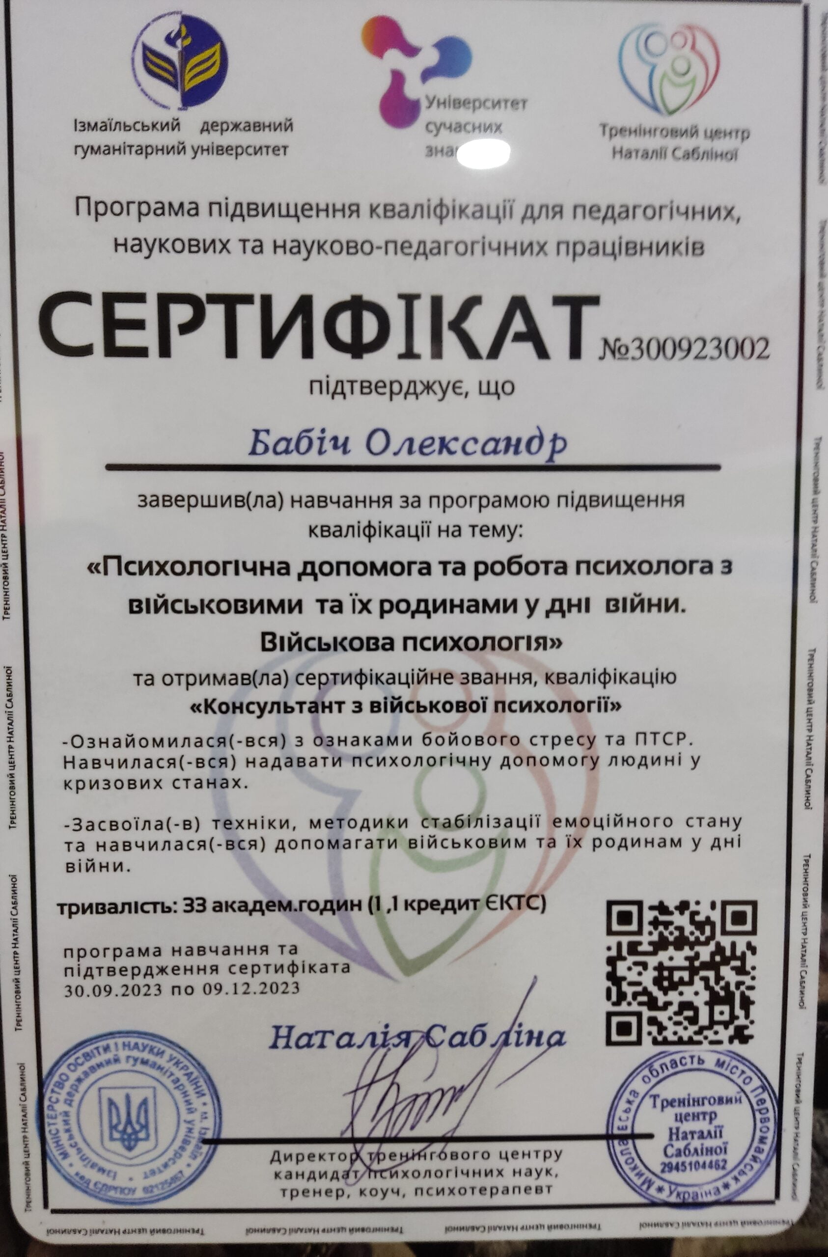 Олександр допоміг мені, як дружині військового краще зрозуміти мого чоловіка. В доступній формі розповів, що відчувають чоловіки,які воюють. І як правильно поводити себе з ними. Професіонал своєї справи. Дякую