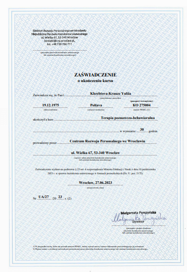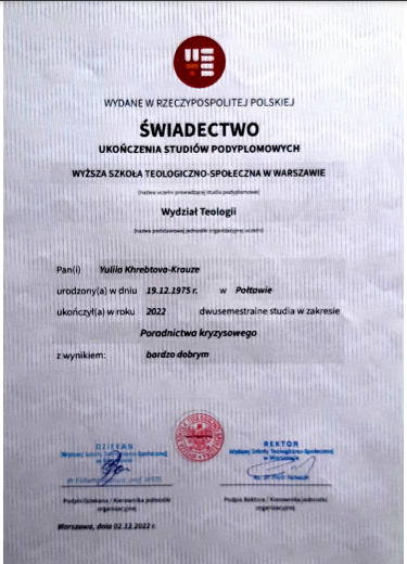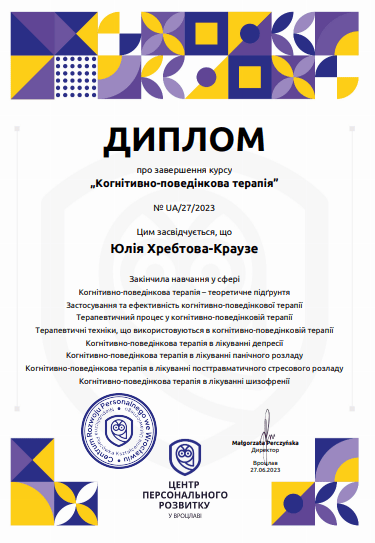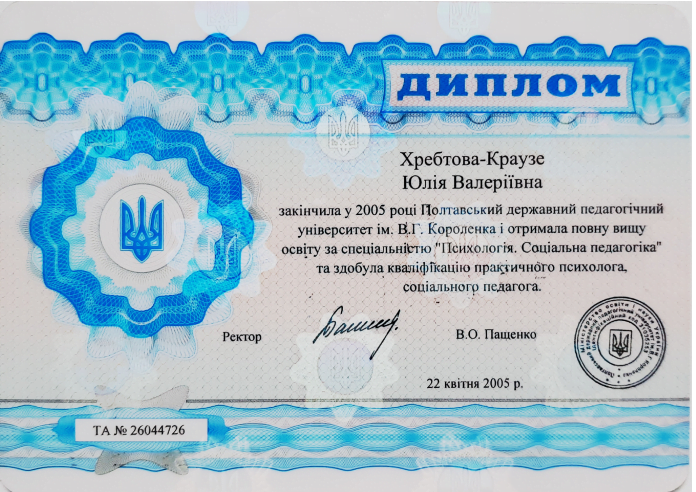 ПСИХОЛОГИНЯ Хребтова-Краузе Юлія Валеріївна
