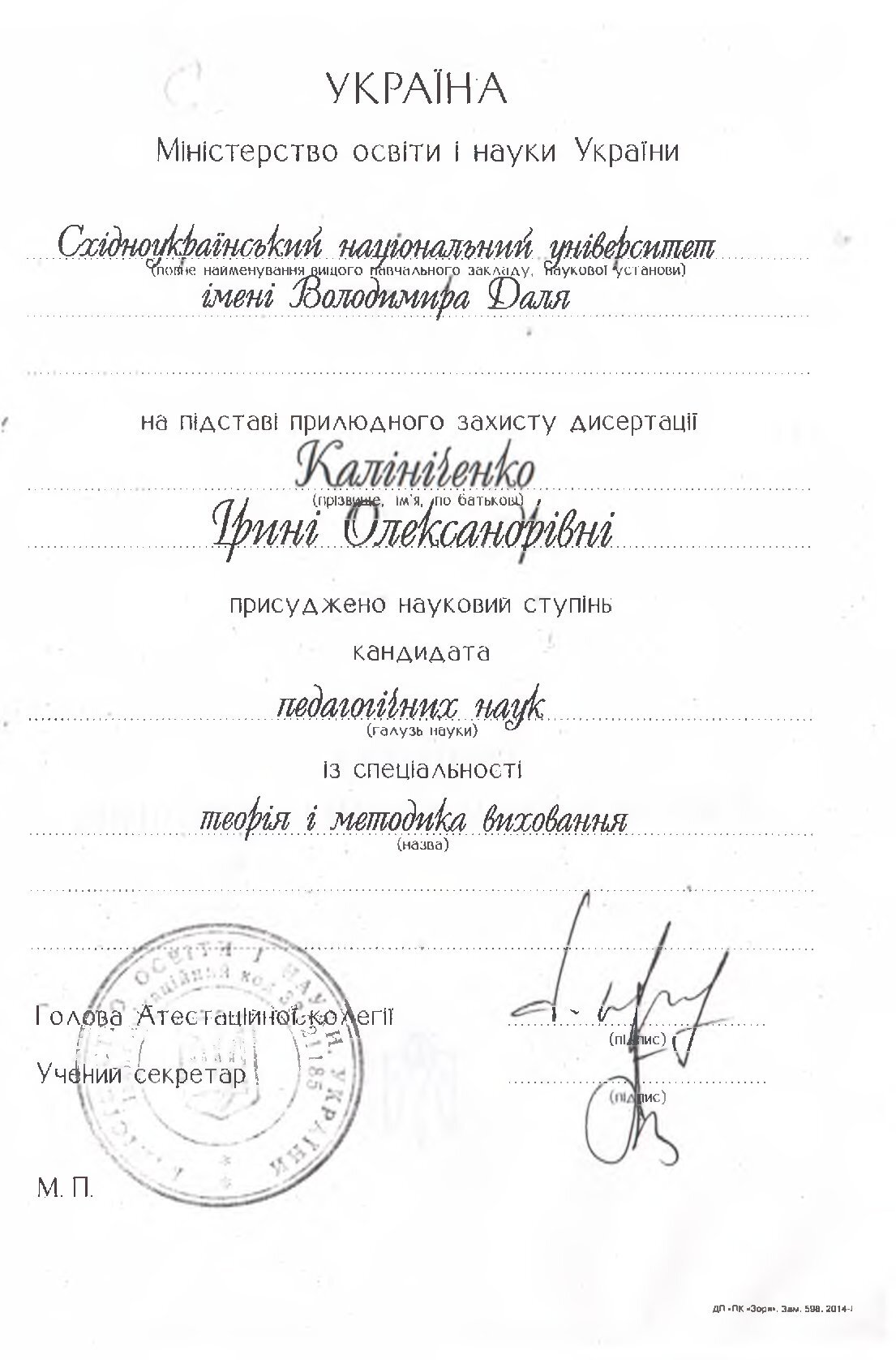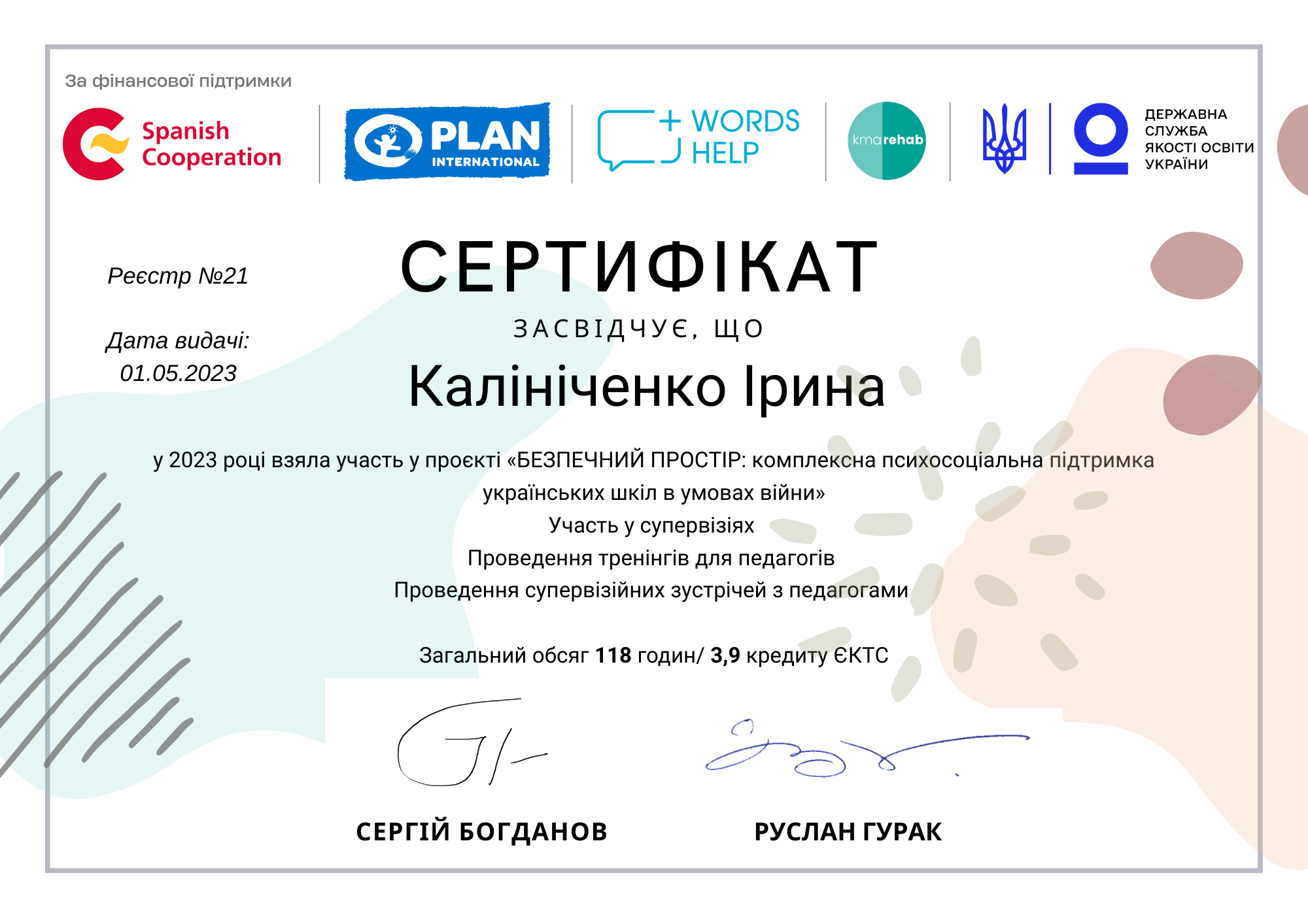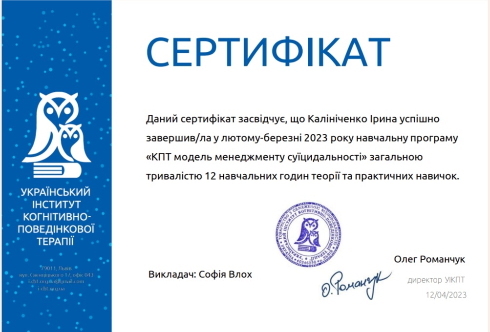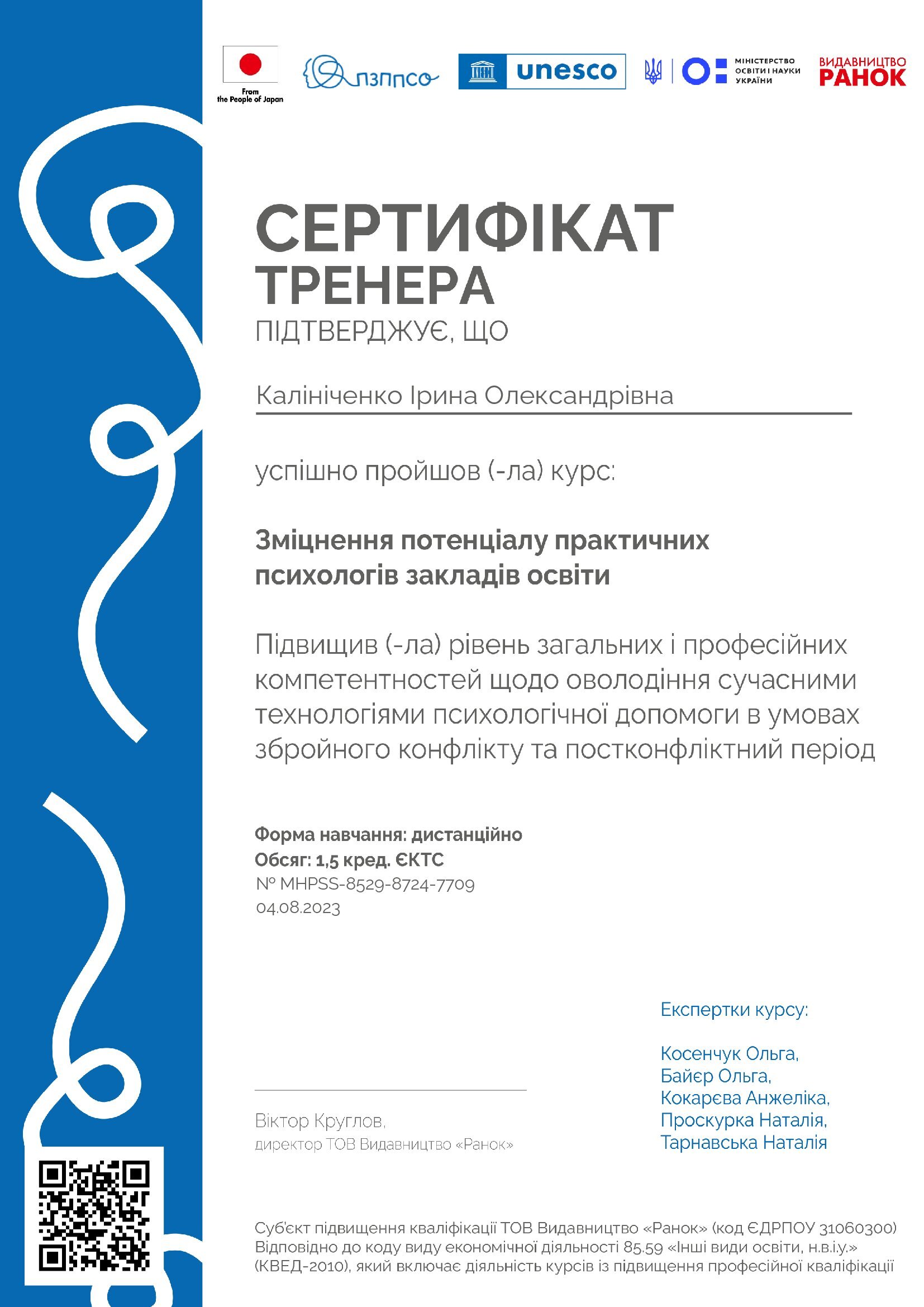 ПСИХОЛОГИНЯ Калініченко Ірина Олександрівна