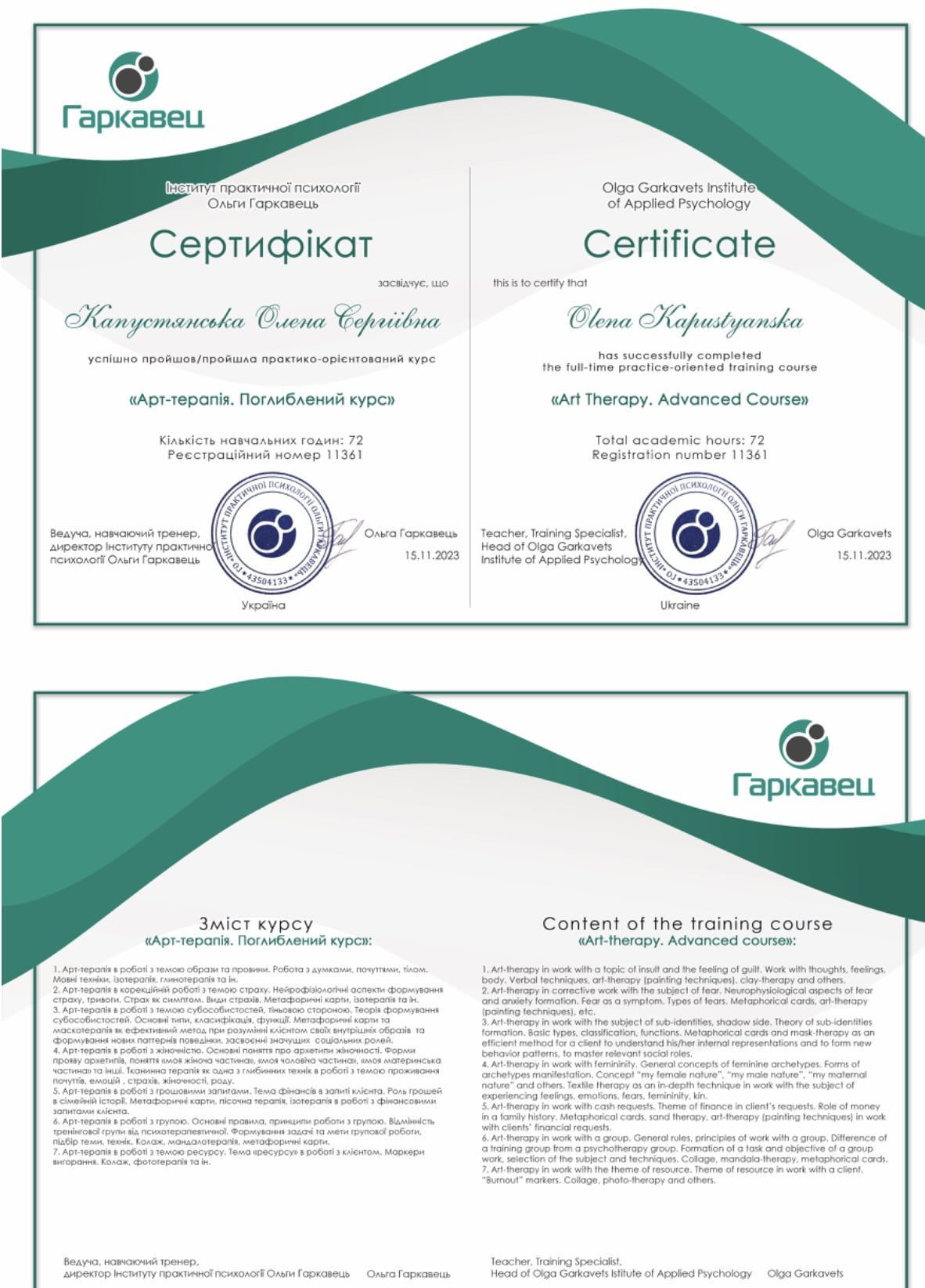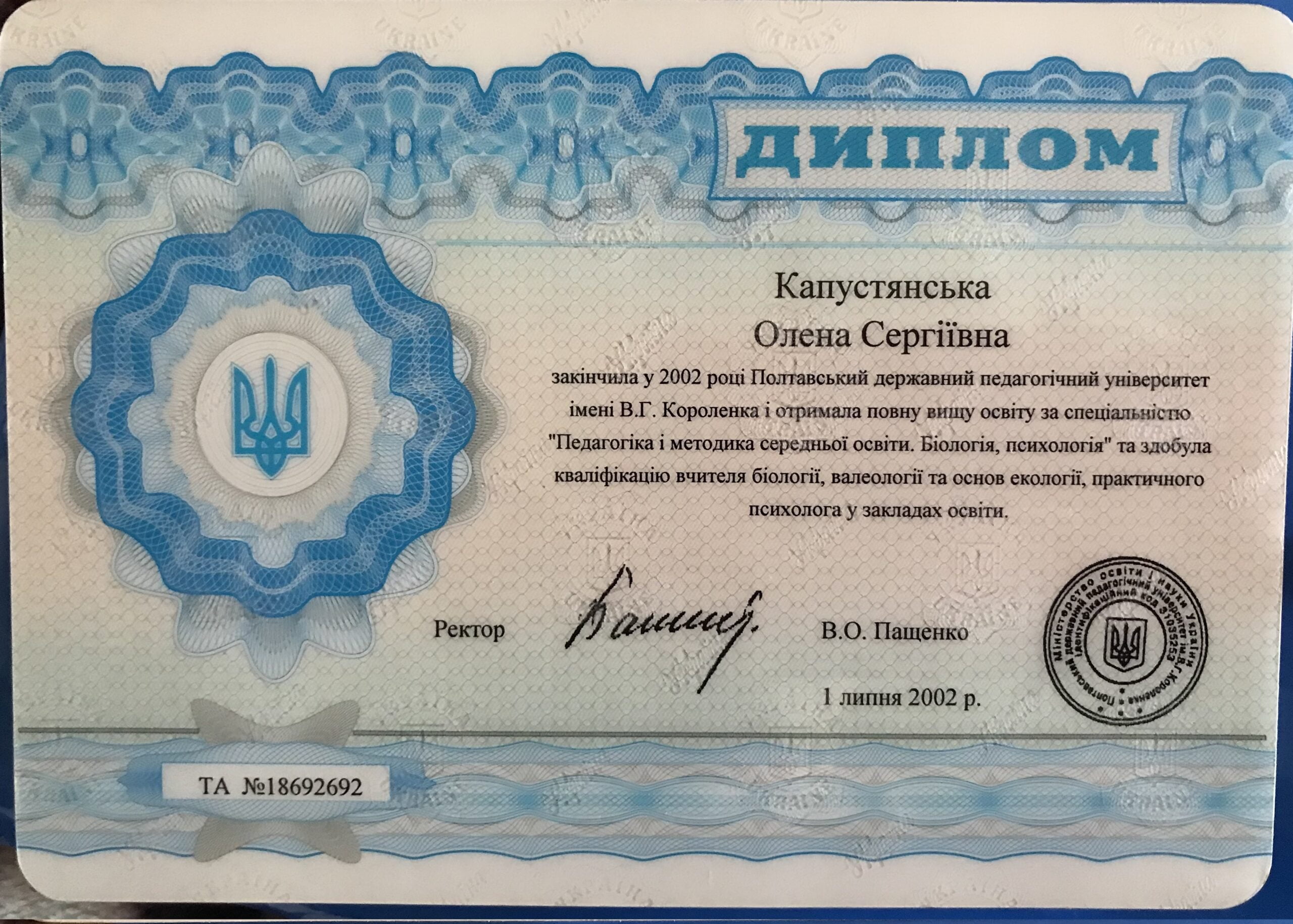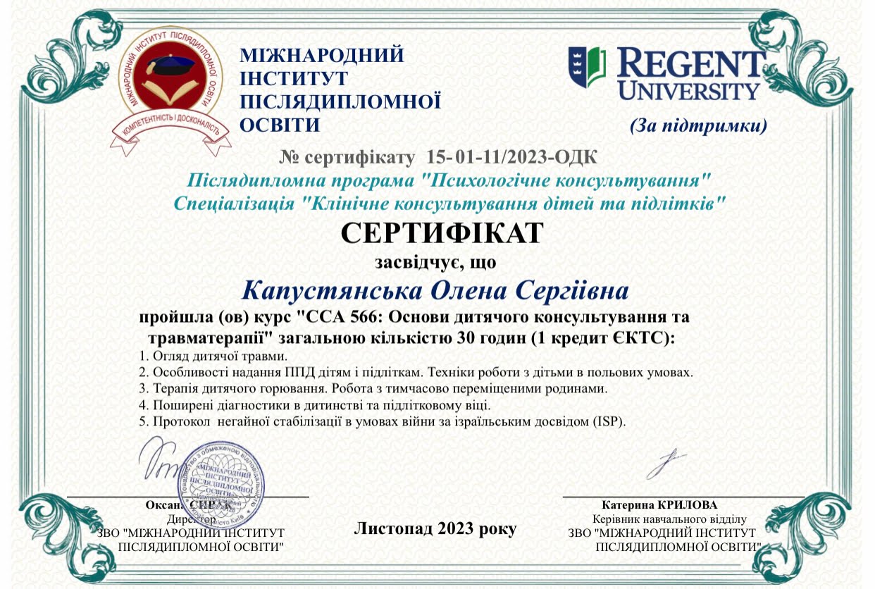 ПСИХОЛОГИНЯ Капустянська Олена Сергіївна